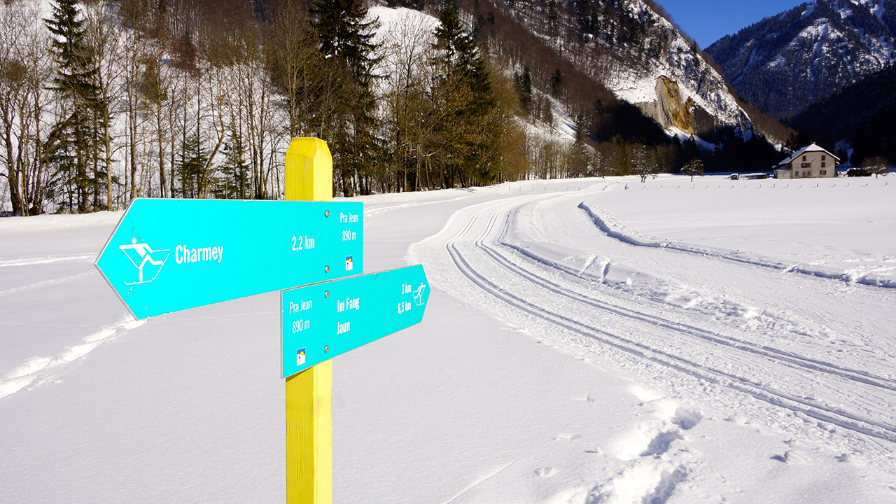 La piste de fond, de 20 km, relie Charmey à Jaun. Le tracé d’Im Fang, éclairé sur 4 km, est illuminé chaque soir et offre des conditions d’entraînement idéales. Deux nouvelles pistes font leur apparition : « la piste pour le coeur » en collaboration avec la Fondation Suisse de Cardiologie et la piste « XCXcross » un parcours ludique pour les familles.